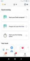 Through the program a person can form a personal plan to improve health. The first step is to answer a series of questions. They appear on the screen when you first turn on the mobile utility. It will also be necessary to choose the purpose for which the user decided to use the program. Among the options there are: increasing energy, reducing weight and so on. The developers have added twelve different plans of periodic fasting to the application. Due to this, any user will be able to find the best option for himself. Some of the available plans are designed for advanced users who have previously practiced such fasting. It is not advisable to choose them for beginners. A separate tab provides answers to frequent questions about such a diet. Due to this user is able to learn more about the practice of periodic fasting, the effect on the body and so on.Additionally