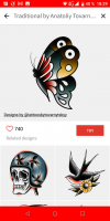 The program offers a rich catalog of tattoos from a large number of masters. It contains both black and white and color images in various styles.Using the program