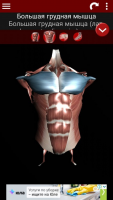 Muscles 3D is an Android application that allows you to use a detailed model to study the structure of muscles in the human body. It provides convenient control, including zooming rotation in several planes. The program will be useful for medical students, athletes, as well as ordinary users who want to expand their horizons. A fairly accurate model of all muscles - head, legs, arms, torso - is used. Even the smallest details are provided. For each element there is a description and a link to Wikipedia. The corresponding publication is opened in the default browser. The material contains a full description and is accompanied by images. You can learn all the features, purpose, interaction with other parts of the body and so on. A simple interface is used, you can use familiar gestures to rotate and zoom. Tooltips are displayed on the screen. Automatic rotation mode is available - the model will smoothly rotate around the vertical axis. This allows you to study the desired area without being distracted by the control. Separate filters allow you to leave only the muscles of a certain group, which makes it easier to study. The interface is available in 7 languages, including Russian. All available settings can be found in the main menu. There are advertising blocks in the interface, but they do not interfere with viewing. A separate section allows you to access additional materials. The catalog is divided into categories, there is a convenient navigation bar and keyword search. Next on