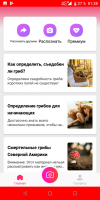 The application scans the received illustration and determines which mushroom is there. Users can read detailed information about it. For example, information about edibility, appearance, distinctive nuances, and much more. Varieties that have been viewed are stored in the appropriate category. The main page contains interesting reviews about mushrooms, which can be read by anyone.License