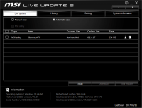 MSI LiveUpdate is a single connection center that is responsible for live updates of software, drivers and utilities in real time. The program constantly searches for data updates and performs a request for their installation. The official MSI server in turn provides round-the-clock user support and responds to all requests.Usage