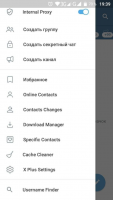 The main menu allows you to access additional functions. There is a full-fledged proxy server, download manager, a module for searching users by name, a separate list of favorite contacts, and advanced options for changing the design theme. The developers have expanded the possibilities for cleaning history and cache, which allows you to effectively free up space on the drive. In the settings, you can change the mode of notifications, the format of displaying chats, images, work with stickers and much more. After activating the invisible mode, other users will not see the activity status of the account. Standard options are provided for customizing the display of personal information - you can hide the number, name and login. When working with voice messages, the voice change mode is supported. The program allows you to record the appearance of other users in the network. The information is collected on a separate panel and updated in real time.Features