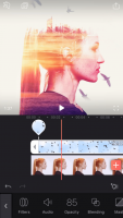 After installing this utility, the user will be able to fully work on video materials. Despite the abundance of built-in tools, the interface of the mobile program is extremely easy to master. It is also worth noting the intuitive management of the editing process. Many manipulations are allowed to make through swipes and other gestures. About half of the editor interface is occupied by a window with a player, through which the user is able to view the video material. This allows you to check changes immediately after making them to the clip. Below is a ribbon that displays the key frames of the video. With its help, a person can quickly rewind the clip to the desired moment. All available tools are located at the very bottom of the interface. With their help, the user has the opportunity to trim the video, apply colorful filters, add text accompaniment, introduce smooth transitions and so on. In addition, the mobile editor allows you to add additional sounds to the audio track from the built-in catalog. In total, the collection of the utility has over a hundred different sounds. If the user does not understand the purpose of this or that tool, he can study the reference materials. They contain information about the operation of all the functions available in the program.Features
