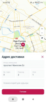 The opportunity to place orders appears after registration, only the phone number is specified. After selecting the desired products you need to go to the cart and confirm the order. It is possible to see the total cost and, if necessary, exclude unnecessary goods. Then the delivery address is specified, there is an opportunity to add a comment for the courier, for example, how to arrive. Supported automatic determination of the current location using the GPS module. It is necessary to previously allow access to geolocation and activate the module. It should be noted that the delivery service is available only in Shymkent, Nur-Sultan and Almaty. Payment by bank card is supported. The history of purchases is saved, which allows you to quickly make a repeat order. It is possible to contact the support service. All dialogs are saved on a separate panel, you can set up notifications about new answers.Features