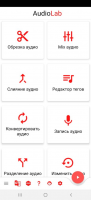 AudioLab is an Android application for audio editing. You can trim, combine, mix and add effects from the catalog. A catalog of additional content is built in. All current file formats are supported.