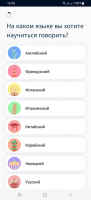 After launching the program, you need to select a language from the list of available languages. There are quite a lot of them, including Turkish, Spanish and Swedish. Next, the purpose of training and the current level of proficiency are specified. This allows the application to optimize the learning scheme. It is recommended to create a personal account, which will allow you to get a number of additional features, including saving progress. In addition to the standard account, a quick login using a Google profile is supported.Lessons