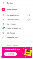 Some content is available to the user from the very beginning of using the utility. Some masks can be unlocked for watching advertising videos. However, a considerable part of the content can be obtained only if you have a premium subscription. If desired, a person is able to try out paid masks by taking advantage of the demo period. It lasts for one week.Features