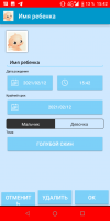 The presented mobile client gives you the opportunity to enter information about a baby or several children, and then keep notes about them. You can record mood, teething, feeding regimen, medical and hygienic manipulations, sleep. Physical data such as weight and height can also be entered. You can attach pictures of your own baby and recordings of his voice. Content can be shared with friends via messengers and social networks.How can I view statistics?