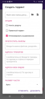 The principle of operation is similar to using the PC version. To start a new download, you need to specify a link on the start page or select a previously downloaded torrent file through the file manager. After the start the basic statistics will be displayed - file size, downloaded part, speed and approximate time of full download. In the settings there is an option to allow downloading only when connected via Wi-Fi. This is useful if mobile traffic is limited in volume. It supports sending notifications when the download is complete. You can download a large number of files at once. In this case, you can flexibly customize the download mode. You can set priorities that affect the download speed. There is a convenient task scheduler and an option to intercept magnet links.Creating torrents