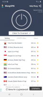 Connection will require simply clicking on the icon in the very center of the user interface. This will launch an attempt to connect to the VPN server. If it is successful, a corresponding key will appear in the upper part of the notification field, which indicates that the connection to the wireless network has been established. Note that a second attempt may also be required due to the peculiarities of the technology itself. Once connected, you will not only be able to visit blocked resources, but also provide your own protection from targeted attacks on the Internet. The fact is that all these attacks will be directed to the server, which has resistance from them due to its security protocols.Settings