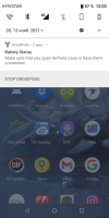 The notification bar will display two charge bars, with the help of which you can analyze the amount of energy available for use. The distinctive feature of Droidpods from standard android smartphone methods is that here the charge of each earphone is displayed separately. There will also be a separate scale next to it to inform you about the amount of charge in the case.Notifications
