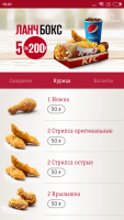 KFC Russia has released its official app for mobile devices with the ability to order delivery, view the menu offered, as well as find the nearest restaurant and navigate to it. KFC - a famous fast food restaurant chain offers its menu of sandwiches, spicy wings with sauce and other products in the app for orders. The chain is located in almost any major city in Russia, so downloading this application you can easily and simply order home delivery, view the menu offered or find the nearest restaurant for a personal visit.
