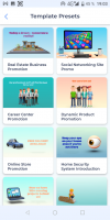 The main feature of the application is an extensive catalog of layouts for different types of videos. You can find them on the start page of the mobile program. In total, there are over a thousand different layouts in the application. For convenience, the creators sorted them into thematic groups. These include:- Music videos;