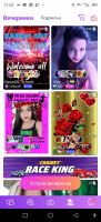 The main tab offers to start a dialog with a random user. The next section contains a feed with photos of other users. This allows you to search for new friends - you can send a message or start a video call. Internal currency is spent for the video mode. It can be earned for various actions or bought for real money. There are sections "Nearby" and "Popular". In the first case, the algorithm selects users in the current location, in the second - a list of the most popular accounts is displayed.Broadcasts