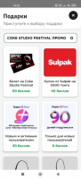 To access the program, you need to pass a simple registration with the indication of e-mail. Quick authorization with Google and Apple accounts is supported. Additional information can be omitted. The main feed contains current promotions from the brands Fanta, Sprite and Coca Cola. You can open the full feed and find out the rules of the promotion, restrictions, exact terms, and the set of prizes. The feed is updated automatically, which will always keep you up to date with current events. The application allows you to save points, track statistics and exchange them for various prizes. These can be tickets, clothes, subscriptions to various services and much more. In the help section you can find a detailed description of how the program works and a list of available functions and menu items.Promo codes
