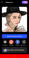 To load the original image, you can use the standard camera or select a file in the local directory. To do this, the application must first be granted access rights to the camera and file system. All basic forms are supported. A simple interface with a minimum number of settings is used. The developers put the main emphasis on the automatic operation of the algorithm. The user only needs to upload a suitable photo, confirm the operation and wait for completion. Processing may take some time, depends on the size of the image and the performance of the mobile device. The new picture has a vector 2D style. After processing is complete, the image can be saved to a local catalog or immediately published in a social network. A standard extension is used, which allows you to open the image in any suitable program. It is possible to upload to another editor for additional processing.Nuances