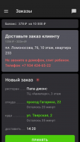 The program interface displays the orders that need to be fulfilled. The maximum time for which the dish must be picked up is specified, this time is important to keep. It also displays the order amount, delivery time, exact address and customer comments if available. Usually people specify landmarks or additional wishes. The program allows you to contact the customer, for example, to clarify information. For navigation around the city there is a built-in map with all the necessary functionality. The current position of the courier and the delivery address are displayed. You can create an optimal route.Features