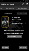 WB Games Cheat is a program capable of hacking games from WarnerBros. It is an application created for mobile devices with Android operating system. Includes cheats for Kombat X, Injustice and others.