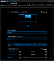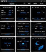 This program is required to change the performance of the graphics card. First of all, with its help you will be able to change various parameters of the graphics processor. You can change the memory voltage, increase the frequency of the cores, speed up the coolers and perform many other similar manipulations. But in addition, the program allows you to get detailed information about the card installed in your computer, frame rate in games and other parameters. For added convenience, GIGABYTE OC Guru allows you to create different profiles. You can save different combinations of settings into profiles. For example, you can create one profile specifically for video games. This will keep your graphics card running at maximum power consumption. And the second profile can be used to create settings that are useful for normal surfing. This is required to reduce power consumption. You can change these profiles using hotkeys.Key Features