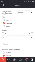 - The program searches for partners considering the current location of the user or according to the specified personal settings in a particular region;