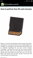 SDCard Recover File is a special program designed to work with SD cards. It is worth noting that it works only on smartphones and tablets that operate on the android operating system. For ios, you need to look for other programs. If you accidentally lost an important document, photo, song or video, then there is a great chance to restore the lost data. In general, now there are so many programs that allow you to recover lost data. There are various programs for the computer that recover data on a flash drive. And with the help of smartphone apps, there is a chance to bring SD card files back to life. SDCard Recover File application will allow everyone to return lost files, because the user does not have to do complicated actions. Even a beginner will cope with this task. In the SDCard Recover File utility you can find instructions with pictures.