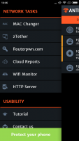 If you compare zANTI with other similar programs, the presented one, in addition to the main function of "hacking" wireless networks, has a lot of other features, so it is more difficult to master. The user can independently select the necessary tool, which are located on the control panel. The interface of zANTI is quite functional and well thought out, you can move from one function to another in just a couple of touches.Main features