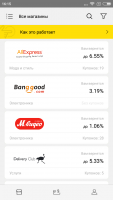 The service returns money from each purchase. The amount of money returned depends on the specific store. On some stores only 1% is returned, and in some stores 6% or more. The site returns money in case you bought a product through its link. Thus, the store pays money to the Megabonus project for bringing in a new customer. A part of these funds is given to you. This is very convenient as you can get some of your funds back. For example, if you buy a phone, you can use the money you save to buy a case or a film. Megabonus works with many stores, from Aliexpress and other Chinese stores, to Russian giants like M.Video, Lamoda, Deliveri Club and others.Cashback
