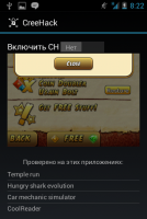 Most games require monetary investment to remove ads or get additional features. To save money, some users hack the smartphone with Root rights, and then install "pirated" versions. But you can do without additional manipulations, just use the program CreeHack for Android . The CreeHack tool is a handy assistant for smartphone owners, allowing you to hack games. It is enough to install it on the device, and then use entertainment applications without the restrictions of the developer. Of course, there are similar ways of hacking, however, the method under consideration is the most comfortable.