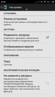 Thanks to the developers who used this software, we got a large number of different graphical shells, as well as unique firmware. They allow you to diversify the work, choose the best solution for yourself, while expanding the standard functionality of the device. Some settings allow you to completely disable pop-up ads, or change the graphic design of your device to something more interesting and pleasant. There are also firmware that disable functions that are rarely used. The application is installed from a standard apk file. In the official market utility, for obvious reasons is absent. For correct operation, you will have to get super user rights, as well as have a device on the android operating system version no lower than 4.0.3.Interface