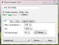 The BrazosTweaker utility provides access to processor control and processor settings for AMD Brazos brand. It is not an official AMD authorization, it was created by third-party developers, so they are not responsible for any problems that may arise in case of improper use. You will have to use the program only at your own discretion, and the risk is also on the user.