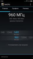 SetCPU is a software with which you can adjust the clock speed of your silicon chip. This tool interacts only with devices that run on the android operating system. It is worth noting that to work, you will need ROOT rights, which can be obtained with the help of various utilities. It is important to understand that by changing the frequency of the CPU increases its heat dissipation and performance. Do it competently, it is desirable to understand how the processor is organized, so that you do not harm the hardware of the device. The utility has a Russian-language version, so that users do not have problems with the language barrier.