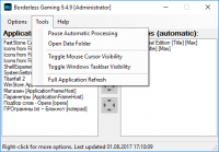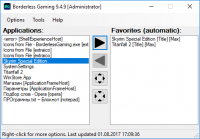 Borderless Gaming is an application that performs an unusual but not useful function. The program can remove window frames in Windows OS. Why is it necessary? Of course for originality and improved perception of the screen interface. This utility is often used by avid gamers who play in several windows in some MMORPG and not only, even ordinary games will be much more pleasant to play without interfering frames on all 4 sides of the screen. The application helps to save a little space on the desktop, also the decision to use this program will be useful for those who like to correspond in social networks or messengers, because you can simultaneously play and monitor the receipt of messages, and then switch to a window with a message without waiting for the minimization of the game window. Also, some players are forced to put the resolution is obviously less than can be on their monitor, as the performance of the game will be higher, and the gameplay will be much more comfortable. Gamer has the ability to adjust the size of the window for himself and by removing the window frames on the sides, he can increase the number of frames per second, which will positively affect the gameplay. The Borderless Gaming program is multifunctional and has many uses. The interface of the utility is accessible and as simple as possible, the user of the program is only required to enter those games and software in which he does not want to see the window frames. The working panel is divided into two parallel windows. The window on the left displays all the programs running on the computer, and the