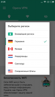 Using the Opera VPN application is incredibly easy. The program is not overloaded with features. To get started, you only need to click on the start button. In this mode, the program will independently find the optimal country for connection. But you can choose the region on your own. There are 5 of them in total, and they are available in a special menu. Such a menu is required if the server in the nearest region falls down. This happens quite rarely, but in this case, just put another region manually. It is worth noting that this utility does not have the highest speed. There are faster solutions, but it is Opera VPN that is the most reliable.Key features