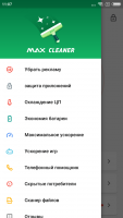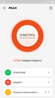 The most important activity of the application is still the cleaning of unnecessary or superfluous files. Surely many people know how quickly the memory of such devices "clogs", and the reason is the residual files that produce any applications. Gradually they accumulate and lead to a shortage of space on the phone. After the scan will be launched by MAX Cleaner application, the current state of the system will be analyzed, as well as highlight all the garbage, this cached files, residuals, cookies, as well as duplicate files. To quickly get rid of them just press the clean button, after that the memory will noticeably increase, the phone will hold a longer charge, and RAM will work much faster.Protection functions