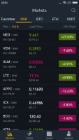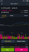 A large number of digital coins are traded with the help of the program resource. On the exchange you can sell and buy, in addition to the already mentioned cryptocurrencies, NEO, ICX, NEBL, XVG, HSR, LTC, EOS, TRIG, ARN, etc. At the same time, the quotes are updated every second, and to conduct a transaction, you need to specify the e-cash to be exchanged and its quantity. One can get information about any open transaction in the Trades section. A person can work with charts that display information for a certain period: for a minute, an hour, a day and a week. In addition, the software shows data about the lowest and the highest fixed value for a selected period of time. Thanks to the program, the user can add currency pairs to the "Favorites" section, which will allow him to more comfortably monitor price adjustments.Features