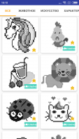 The Star Coloring app contains a rather voluminous catalog with images ready to be colored. A huge number of themes, anything and everything a person might like. Templates are united by only one thing - each of them consists of pixels, which are numbered with certain colors that correspond to a certain color of paint. All you have to do is select a pattern, and the window that opens will have a ribbon of colors at the bottom. There's also an eraser there, if suddenly a pixel was painted with the wrong color. And yes, the application will show you the errors, but you can ignore them if you like the result better. When the image is fully colored, you can save it to the gallery, or post it to your social network (only Instagram and Facebook are available).Usage