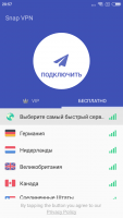 It can be said that Snap VPN is not the best such client on Android of all the existing ones, but it is not the worst either. There are 5 free servers, the rest require payment. If you are working on the free version and there is a question of choice, there is a key "Fastest", and then the program will automatically connect to the server that has the lowest load, which means that the speed of work is higher. There is also a paid subscription, which opens the VIP section. There are much more access points here. Many of them have a mark Faster, what this means does not need to be explained, but it will have to be checked only by the users themselves, as the opinions are very ambiguous. There are almost no settings in the Snap VPN app. You can only control whether it will send notifications to the user and you can also make the connection to VPNautomatic when the smartphone is turned on.About the interface