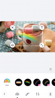 In the client of this application are quite unconventional tools that allow you to edit your photos. In addition to the usual functionality, such as adjusting brightness, temperature or saturation in Rainbow you can work with filters and effects that will make your photos brighter or darker, and you can apply several filters to one photo, selecting specific areas for their work. There are a total of 20 filters in the app. Someone - someone will think that this is a lot, but given that they are all quite monotonously iridescent, it turns out that there are not so many. As for the effects, things are better. By the way, it should be noted that the iridescence of colors is the main feature of this application, although the name claims otherwise, most of the filters are rainbow colors and other motley colors for photography.Disadvantages