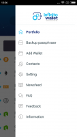 First of all, a very useful feature is cryptocurrency protection. The account is protected with a password. To make it more complex, its generation is provided by Infinito Wallet's internal algorithm. This makes the password illogical, which makes it harder to crack. True, the owner of the account will also have a hard time remembering it. But everything is simplified by the presence of the fingerprint unlock function. The utility will also help you manage your cryptocurrency. First, it allows you to see the value of digital currency from the entire profile, or an individual token. In addition, the function of making transfers to various wallets is available here. If desired, money can be withdrawn to a card, using special exchangers. The only significant disadvantage of Infinito Wallet is the interface, which has not been translated into Russian. This is a huge disadvantage, because of which many users will not be able to work with the application normally. In the latest versions a special function of working with QR codes and smart contracts has been added.Key features