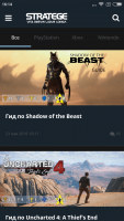The central window of the application contains all the news from the gaming sphere, which are updated on a regular basis and for ease of search are sorted by the relevant platforms. The news feed is updated on a daily basis. In addition to reading the informational part, Stratege users have the opportunity to comment, share with friends through social networks and messengers, as well as all the most interesting things to add to the "Favorites" folder. Of the disadvantages that have been noticed in the Stratege application of early versions for the android operating system, it should be noted some problems with video playback in the section "TV" news. But we can hope that the developers will quickly manage to fix this shortcoming.Guides and Trophies