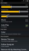 The application provides only one menu, and this is the menu with settings. Here you will be able to change the frame rate of the visualization, the size and number of particles, as well as adjust the music background (enable/disable it).Main options