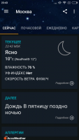 With AccuWeather you will no longer have to guess what the weather will be like tomorrow. No need to listen to the radio or wait until the evening to watch the weather forecast on TV. Being in any place, you can open this program and find out all the information about weather conditions. Using this client, you will be able to see the weather for a couple of weeks ahead, and track its possible changes. In addition, the user can study the weather conditions for the current day. You can also get acquainted with the ultra-accurate forecast for several hours ahead. The mobile application is equipped with a special section that displays the following dаta: presence/absence of wind and its speed, dry weather and precipitation (minute by minute), and others. To use the first function, allow the handheld device to track your location using GPS.Version information