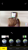 Once you have recorded or uploaded a video file, you can edit it using the built-in editor. For example, you can get rid of unnecessary parts of the recording. Then, you will need to choose the filter that you will apply to the video. There are about 20 filters in the application under consideration, among which we can mention Glitch, Heartbeat, OldTV, NoiseLine, Nostalgia, VHS, Weird, Dazzling, LineGlitch, PixelShift, Sideling. All filters are categorized into 4 groups: Beat, Art, Multi, VHS. By the way, you can find the most unusual effects in the first two groups. How long you hold the icon with the image of the desired filter depends on how long it will work. At first it can be difficult to figure it out, that's why the developers have equipped the program with pop-up tips. You can use other filters only after purchasing the extended version of the client.Key options