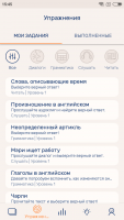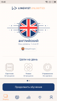 The mobile client not only helps you learn languages by completing certain tasks every day, it also sends motivational alerts to the user. These messages provide information on progress. The mobile application also rewards its users with virtual badges, which are given for completed topics and blocks of tasks. Among other things, the user can independently set goals for himself and monitor the process of achieving them.Key features