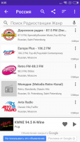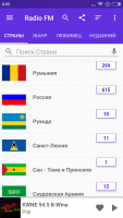 When launched, the start page gives access to a selection of available countries. It also indicates the number of radio stations for each country. This application provides the ability to sort songs by genre, list your favorite stations and return to a channel you have recently listened to. All necessary information about the digital identifier of the radio station, name, host, bit rate and "wave" is displayed only while listening to the song.Useful features
