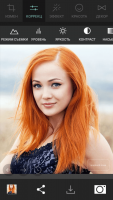 All the basic features of Cymera are the same as in any other similar applications. First of all, these are stickers, masks and other elements of decorating and finalizing photos. At the same time, the implementation of these features in the app is done a little differently. Usually, these filters allow you to change the color of a photo, but in Cymera all these features have become much more advanced and interesting. You can use them to improve the complexion of your photo, make your waist slim, widen your hips, and elongate your legs. This is a very good set of features for an application that is basically focused on processing human photos. Another big plus for Cymera is that processing can be done both for uploaded photos and in real time when a photo is being taken. In addition, you can make a collage, set a photo timer and connect a Bluetooth monopod to the device.Interface