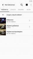 The mobile client implements a library, to which all available musical compositions are automatically sent. To make it easier for the user to interact with the utility, all available audio content is divided into categories:- songs;