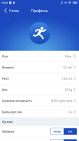 Another equally useful feature is the display of statistics on the distance traveled and the number of steps taken over the last 24 hours, 7 days or month. The basis for calculating the daily step count and distance is the user's anthropometric data, which must be entered beforehand. Users can find out the percentage of steps taken today as well as the number of calories burned.Key features