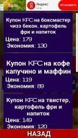 The mobile client only allows you to familiarize yourself with the prices of goods in KFC, which are sold at lower prices. There are no discount coupons or promo codes in the application. This software is not useful in any way and, of course, is not popular among users. With its help, you can only calculate the cost of a certain dish with a discount, if you independently find a discount coupon or promo code. The application itself does not provide links to them.Features