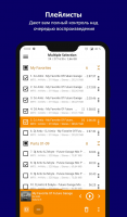 AIMP is one of the most popular music players that has moved from home computers to Android devices. While the program is still being finalized, some versions of the platform may give malfunctions. The interface of the program is very similar to many other similar analogues. In the center of the screen is the album cover, to which the song belongs, and at the bottom of the screen is the entire control interface. Swipes can be used to quickly scroll through the records, which allows the user to get to the desired one faster. The smartphone screen in this application has become a quick playback panel. You can see pause and rewind the track, adjust the playback of the song, also all the options are also adjusted through the screen. It is possible to loop the playback of the same tune, or several of them. Also, you can put the playback of existing music on a random option, then the tracks will be played randomly. A very useful function is the equalizer with 9 sliders, which has quite a wide range of possibilities to adjust the sound quality. The interface is designed in black and orange colors, standard for this player, and the application itself works with any audio recording formats.